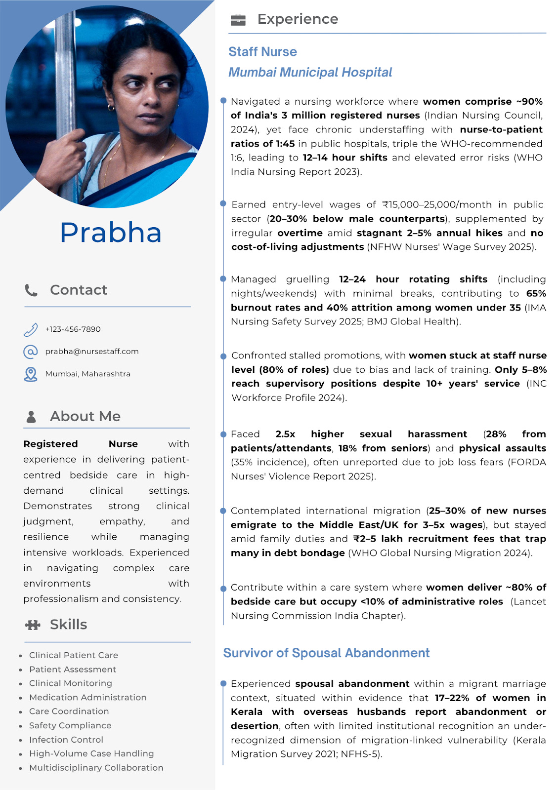 This fictional CV is a creative work inspired by the character Prabha from All We Imagine as Light (2024), with all names and references respectfully credited to the film’s original creators and rights holders.